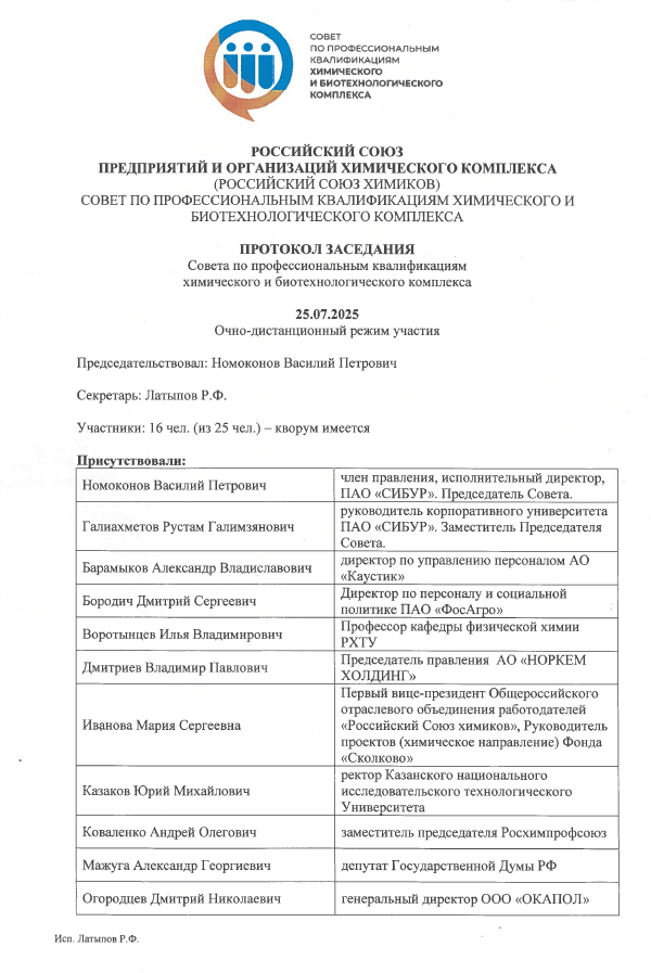 Заседание Совета по Профессиональным Квалификациям 25.07.2025